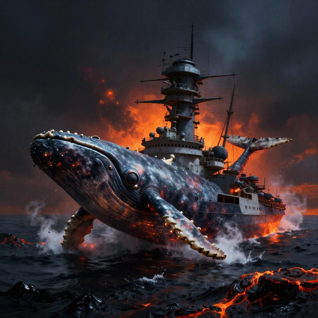 Colossal Whale-Skeleton Dreadnought on Lava Sea