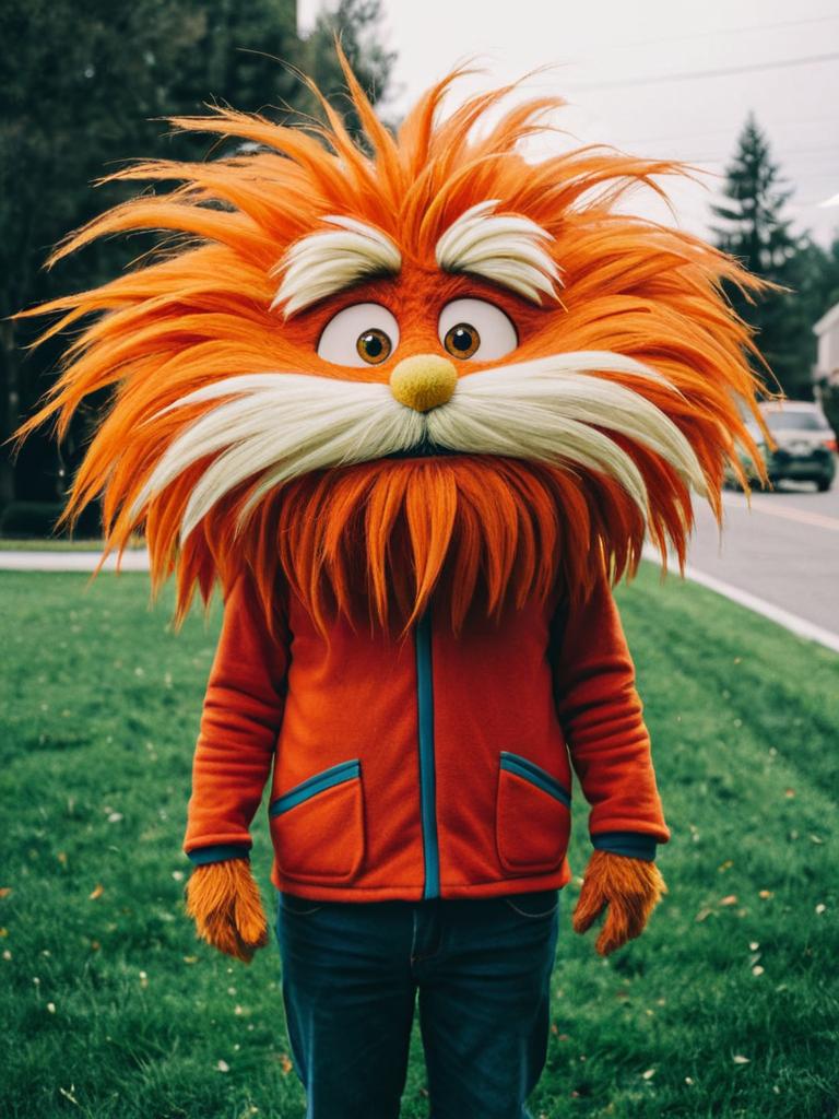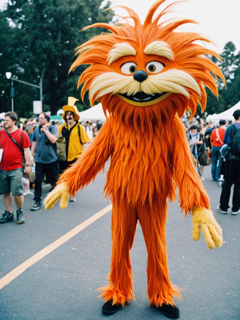 Person in Lorax Costume at Outdoor Festival