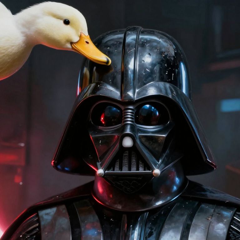 Rubber ducks march in perfect formation, led by a distinguished goose donning a tiny general's hat, its orange beak and feet gleaming under the watchful eyes of blurred spectators in the background.