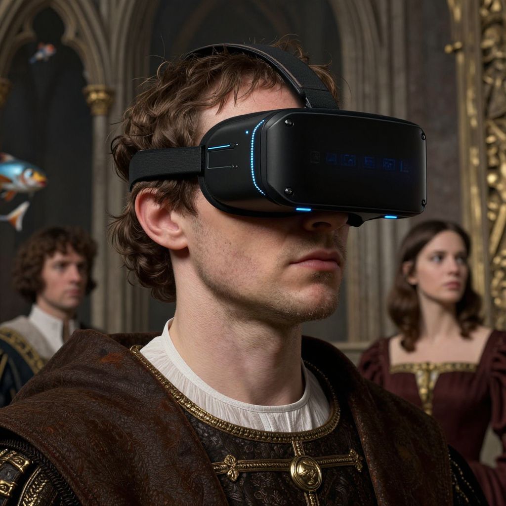 Jan van eyck closeup portrait of a medieval man with cyberpunk vr headset, nicoletta ceccoli, mark ryden, lostfish, hyung tae, frank frazetta, depth of field, detailed and intricate gothic environment, 8 k resolution, hyperrealistic, octane render