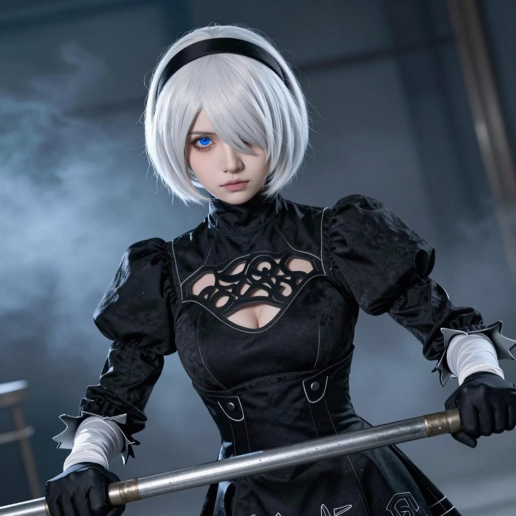 Intense Cosplay Portrait with Sword