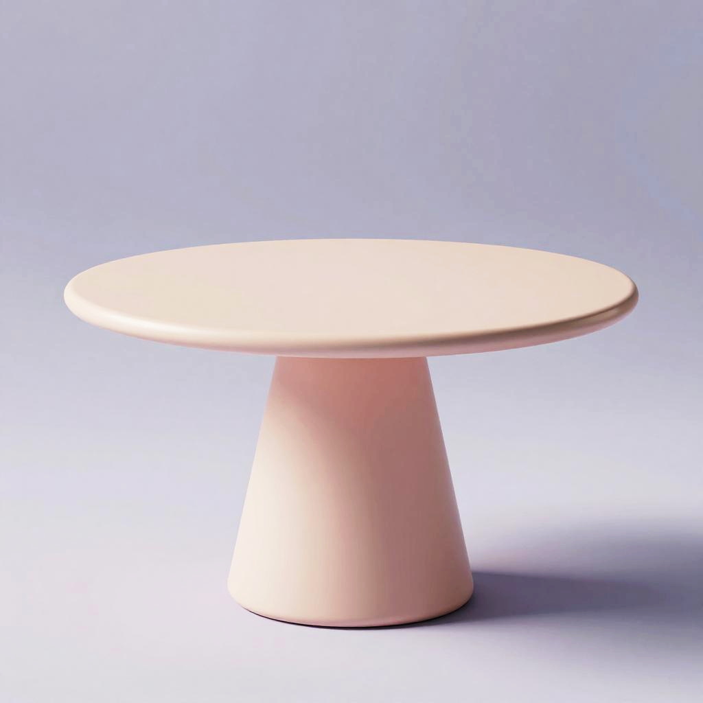 Pregnant belly table with a belly-shaped tabletop, surreal design, floating in a dreamlike pastel environment, soft shadows