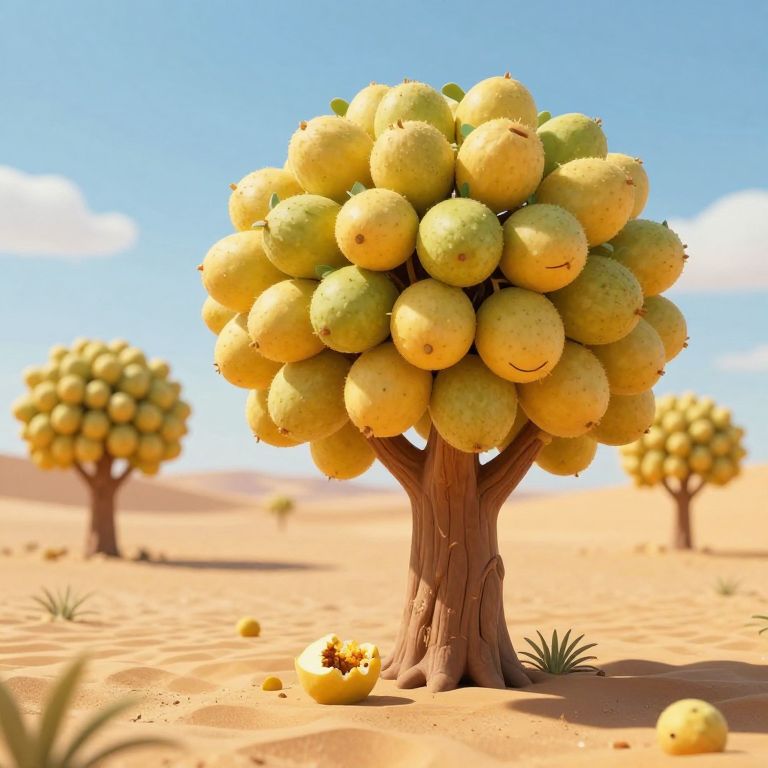 Dream-fruit trees grow in a desert where each fruit bursts with the memories of sleeping travelers, absorbed when chewed.