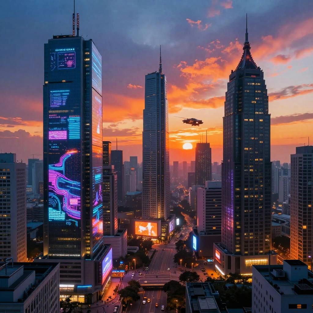Futuristic Urban Development at Sunset