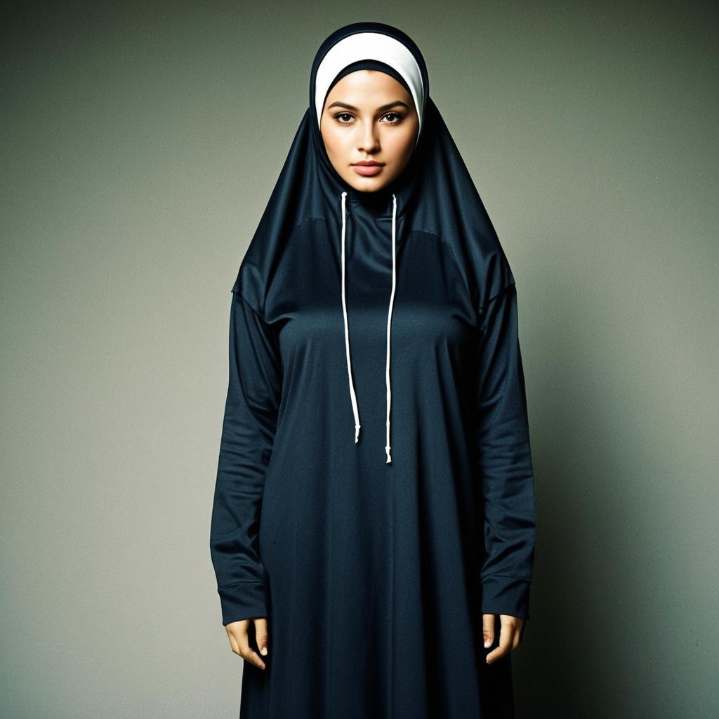 Elegant Woman in Beige Embroidered Abaya with Headscarf