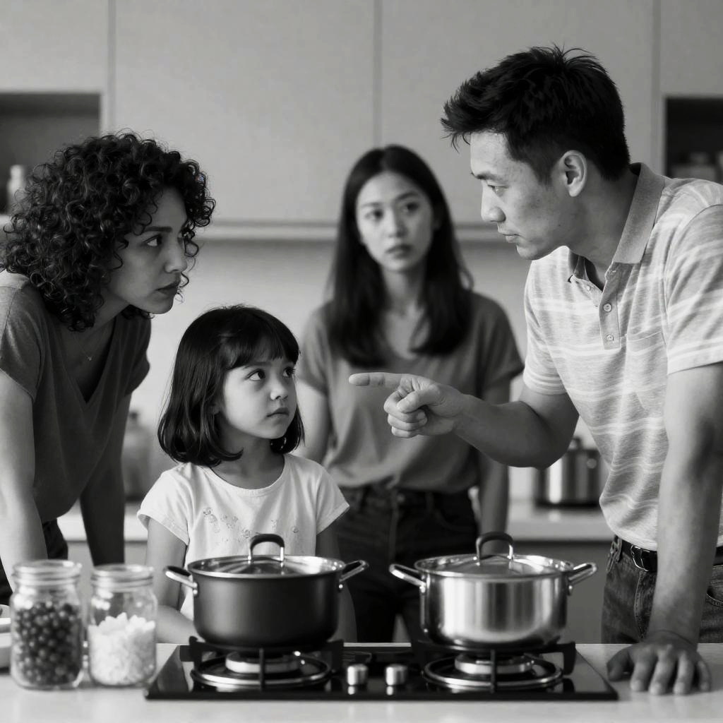 Family Moment in Black-and-White