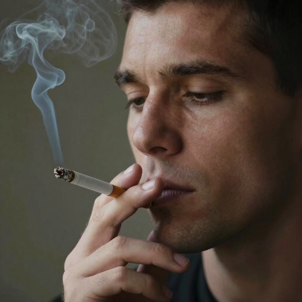 Hyperrealistic Close-Up of Smoking Man