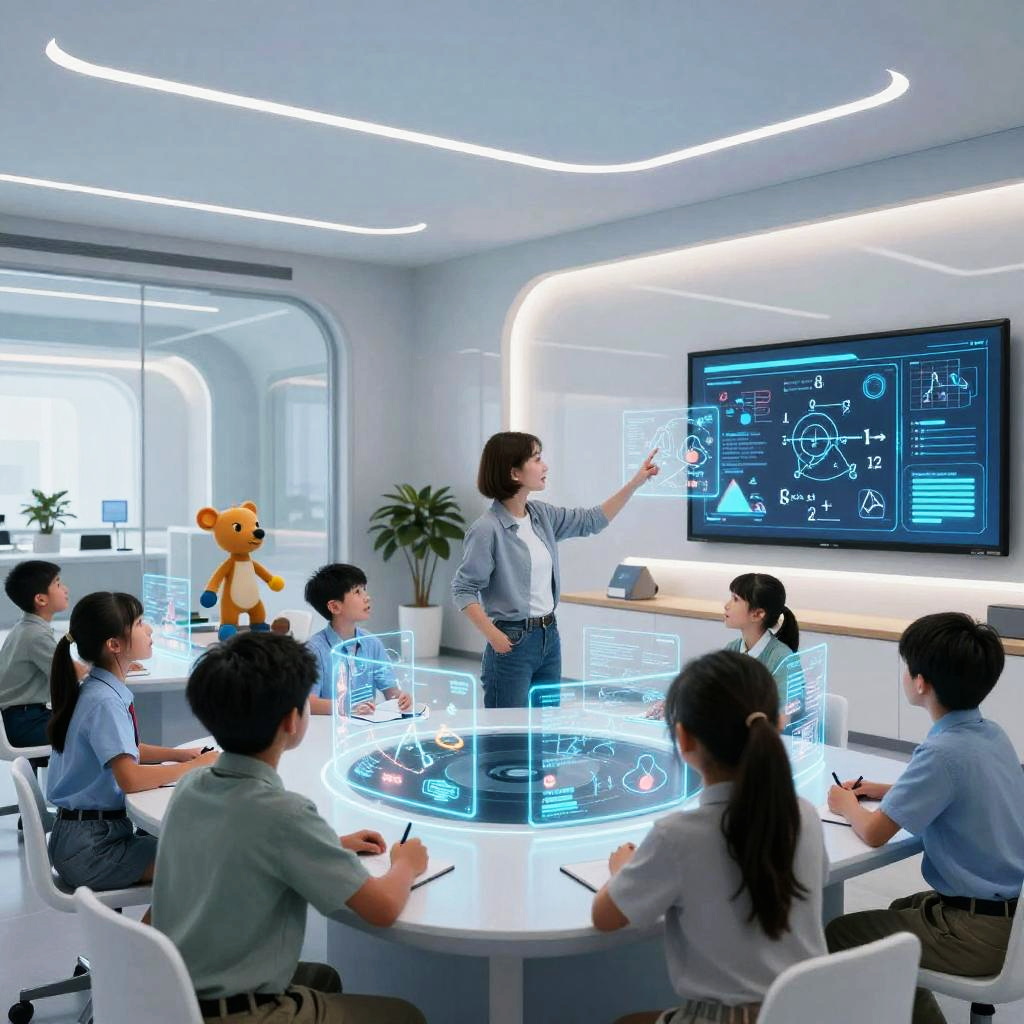 Futuristic Classroom with Holographic Learning