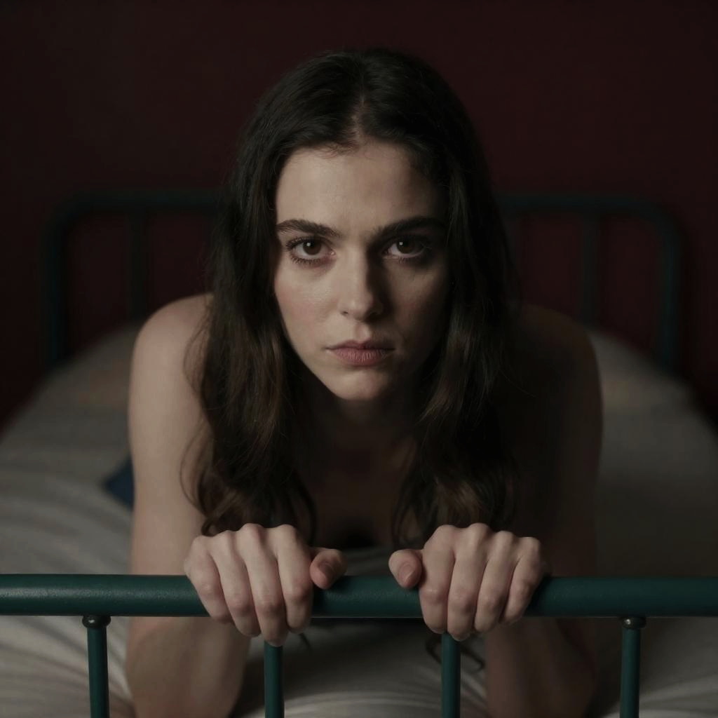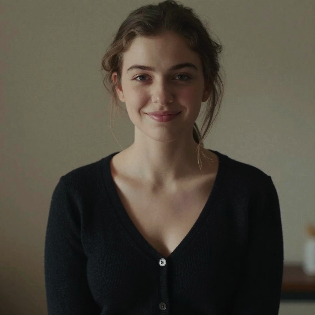 Front shot, portrait photo of a 25 y.o american woman, looks away, natural skin, skin moles, cozy interior, (cinematic, film grain:1.1)