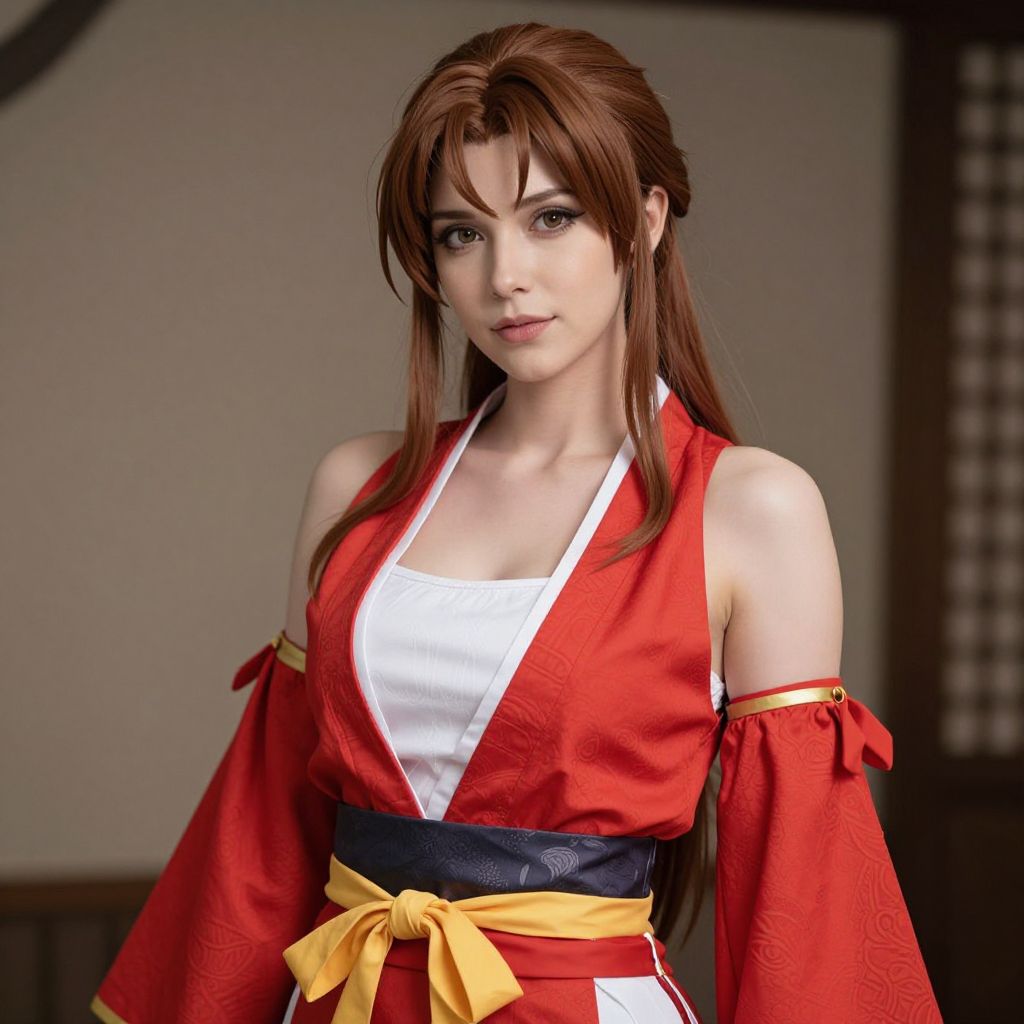Sexy cosplay woman character wearing Kohaku costume. Realistic photo. Jane Doe dressed as Kohaku. Realistic photo, caucasian woman, pretty face
