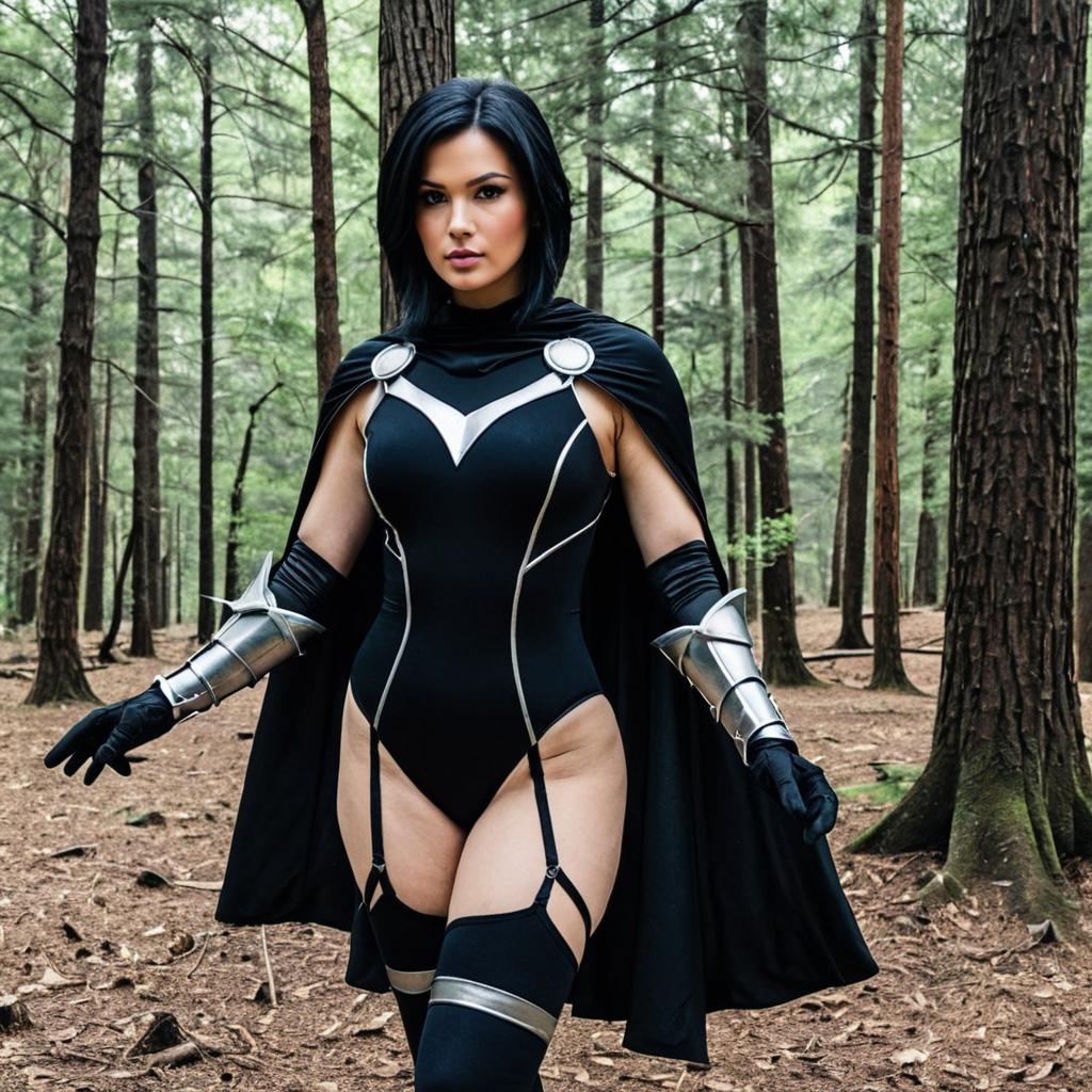 Cosplay Woman in Blue and Silver Bodysuit on Grand Staircase