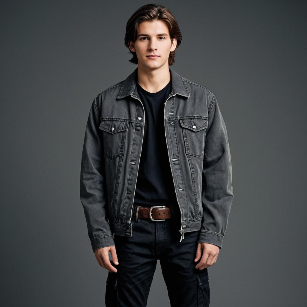 Man fashion sweaters,1boy, realistic, male focus, solo, brown hair, sweater, pants, looking at viewer, jeans, simple background, blue pants, photorealistic, denim, standing, closed mouth, brown eyes