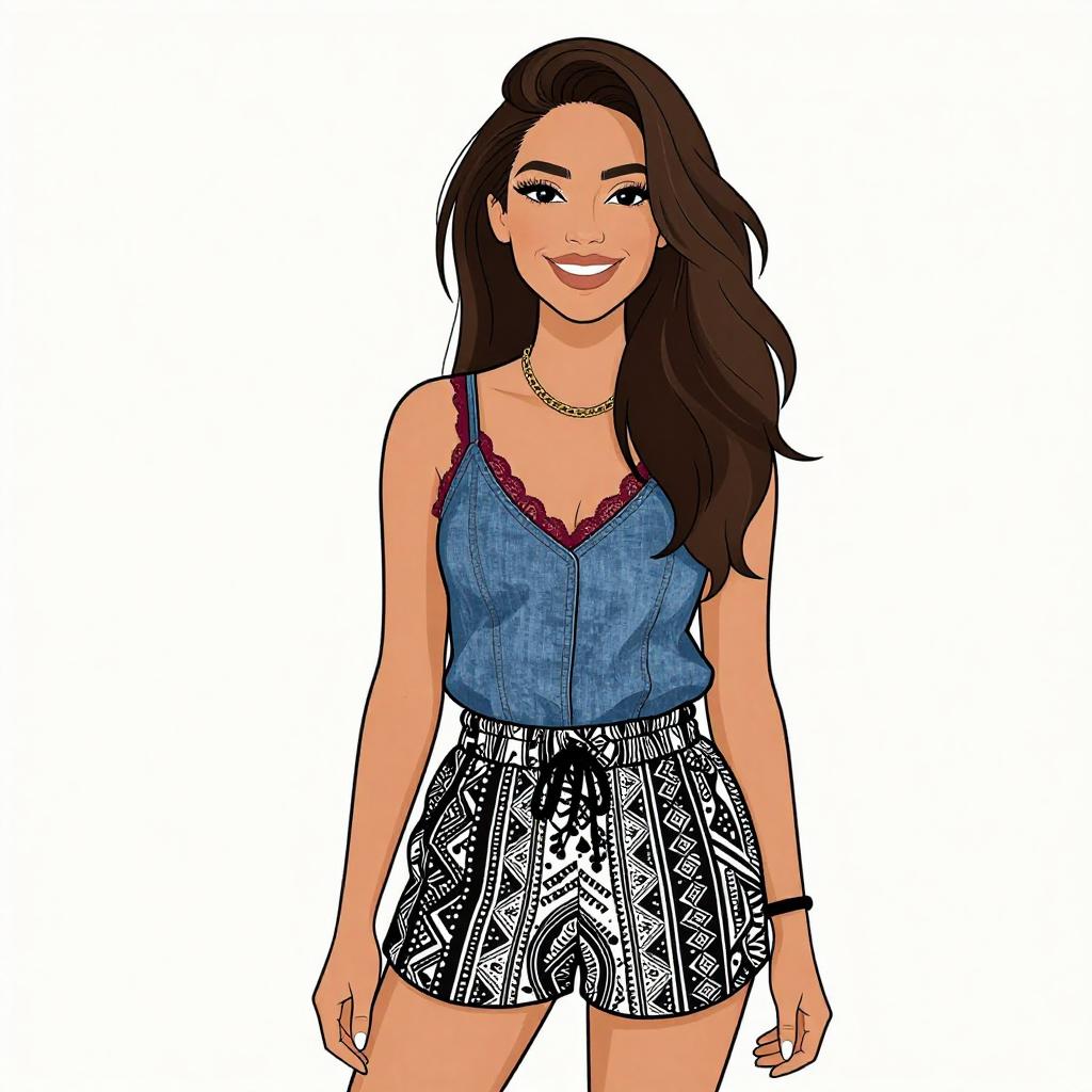 Boho Chic Woman in Patterned Romper