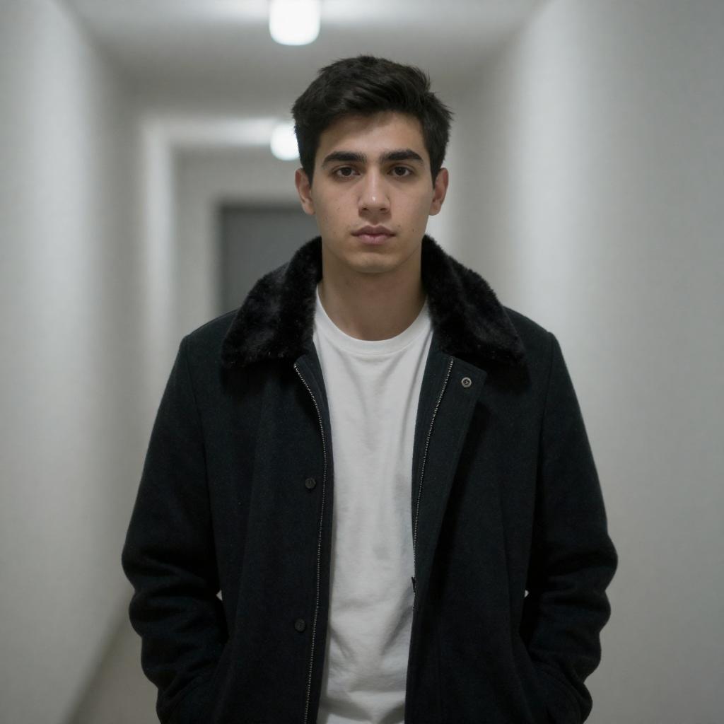 Black and White Portrait of Young Man Smoking