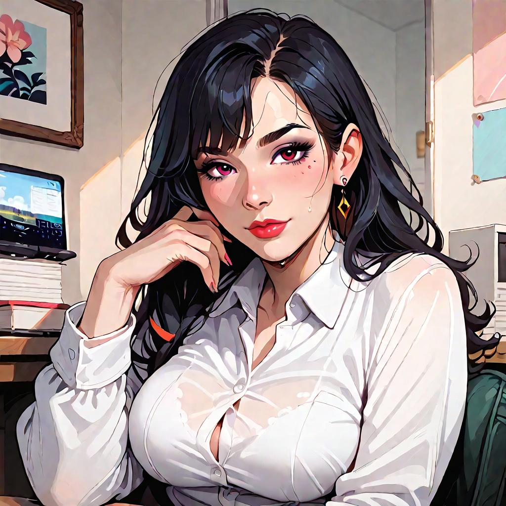 Score_9, score_8_up, score_7_up, score_6_up, score_5_up, score_4_up, mature businesswoman sitting in office looking at viewer