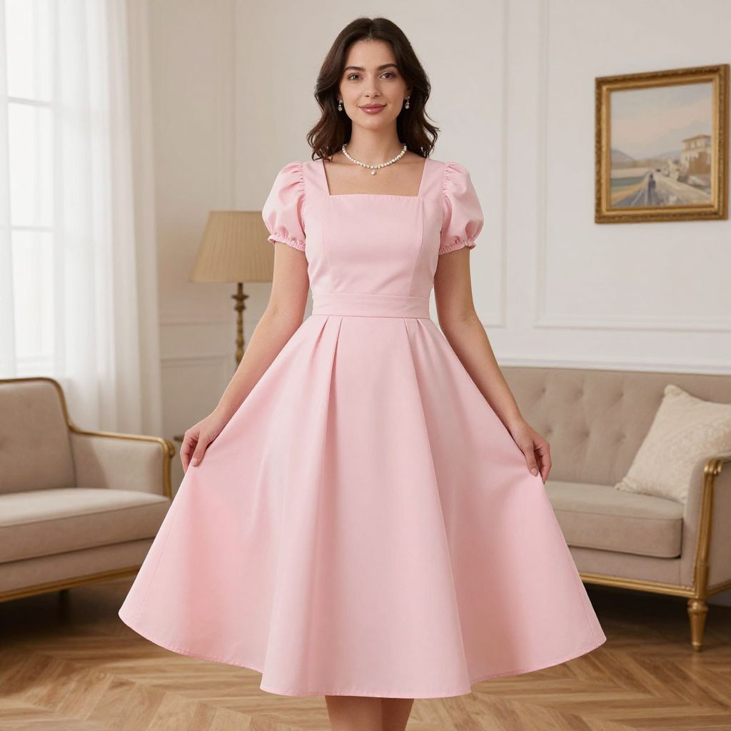 Woman in Pink Frock Dress