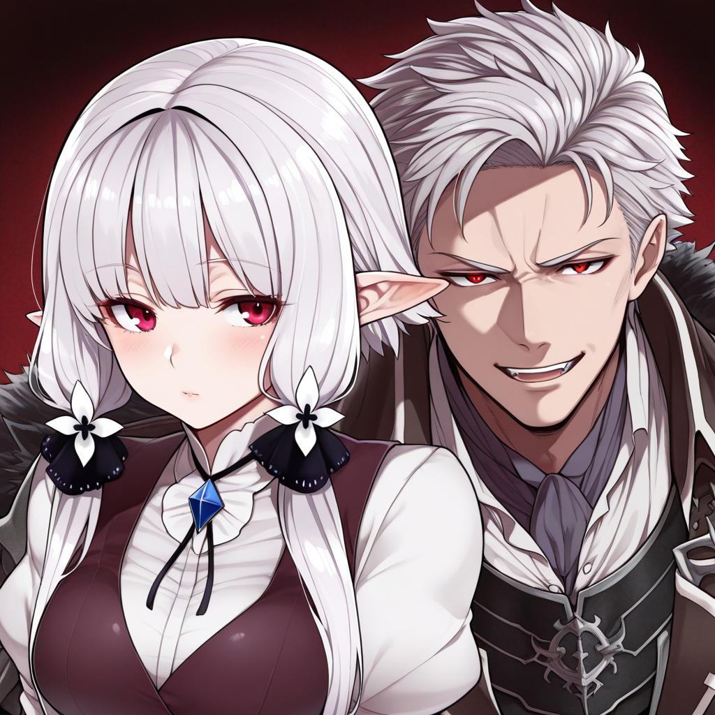 Astarion, baldur's gate, 1boy, red eyes, short hair, white hair, grey hair, white shirt, vampire, elf, by artist mitsudoue, illustrious