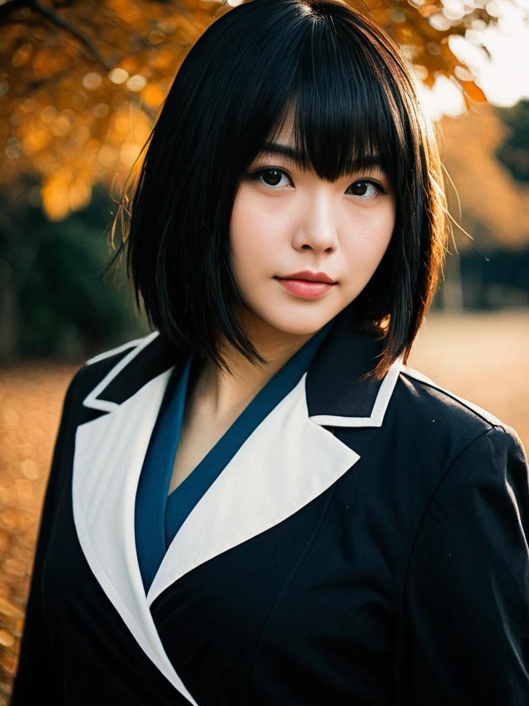 Sexy cosplay woman character wearing Yumie Takagi costume. Realistic photo. Jane Doe dressed as Yumie Takagi --sref 1393
