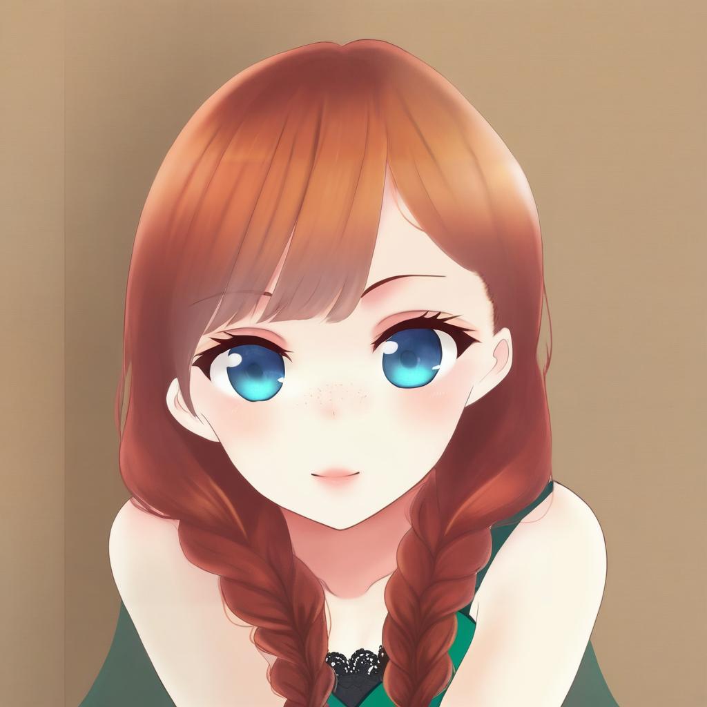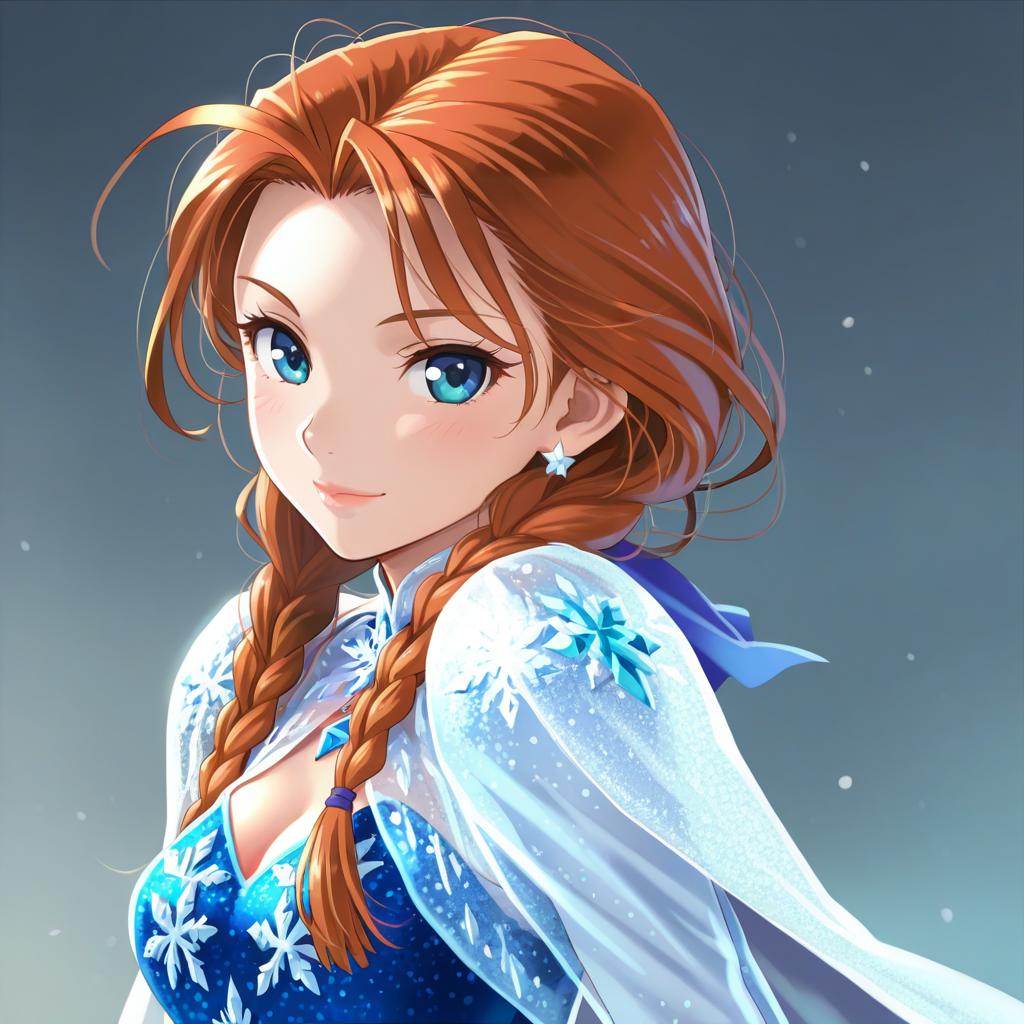 Anna (frozen), frozen (disney), 1girl, lips, blue eyes, long hair, orange hair, brown hair, twin braids, freckles, by artist kugelschreiber, leet