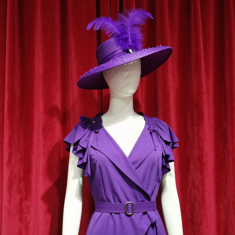 Mannequin in Purple Outfit with Feather Hat