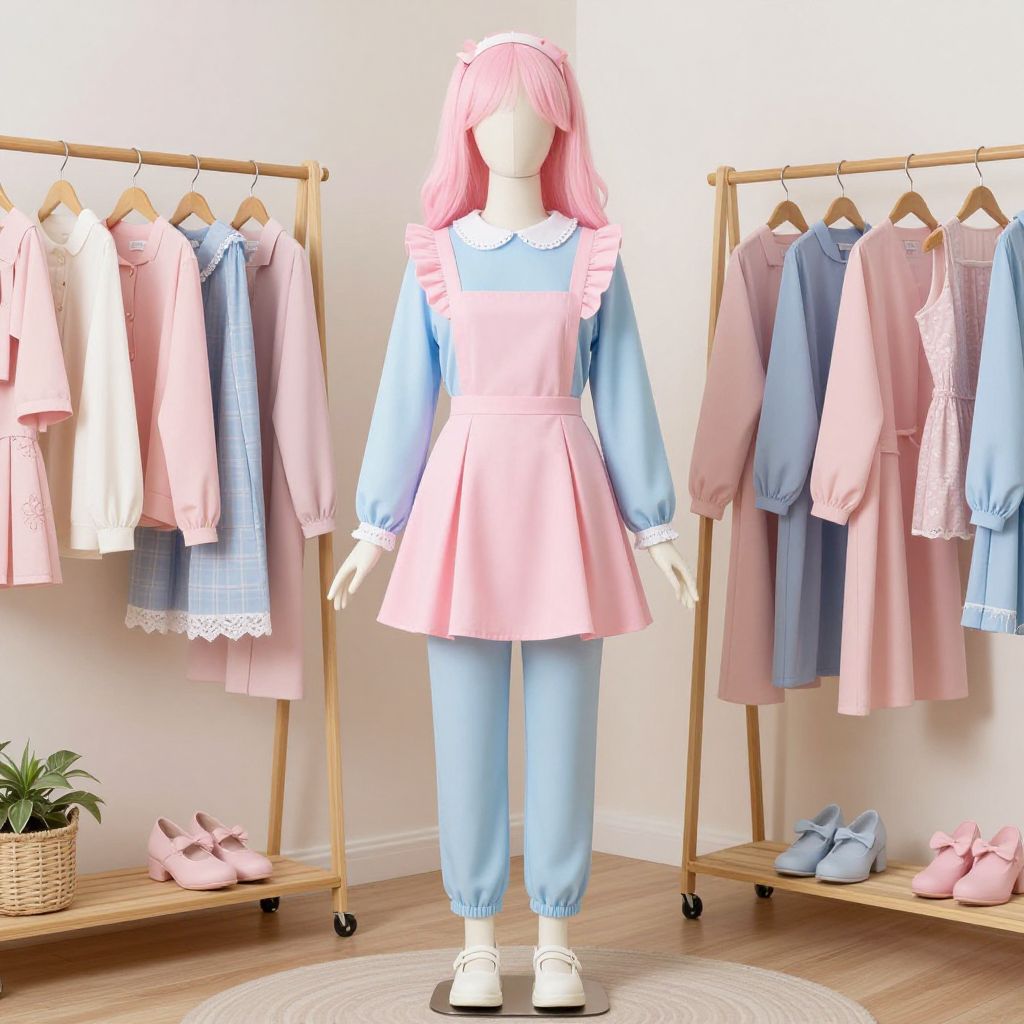 Pastel Colors Clothes Costume, dressed in a pink and blue outfit standing in a room