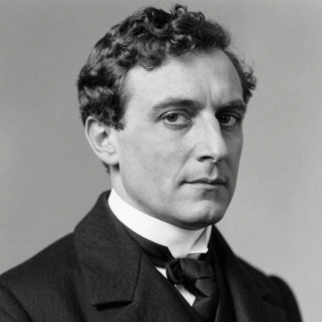 Aristocratic facial features, vintage black and white photo style, strong jawline and aristocratic nose, classy expression with slight smile, classic 19th century fashion, subtle grain and film noise for authenticity