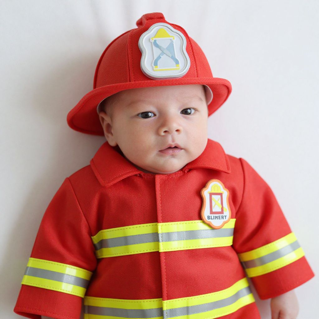 Newborn Fireman Costume Age, a close up of a baby wearing a fireman costume