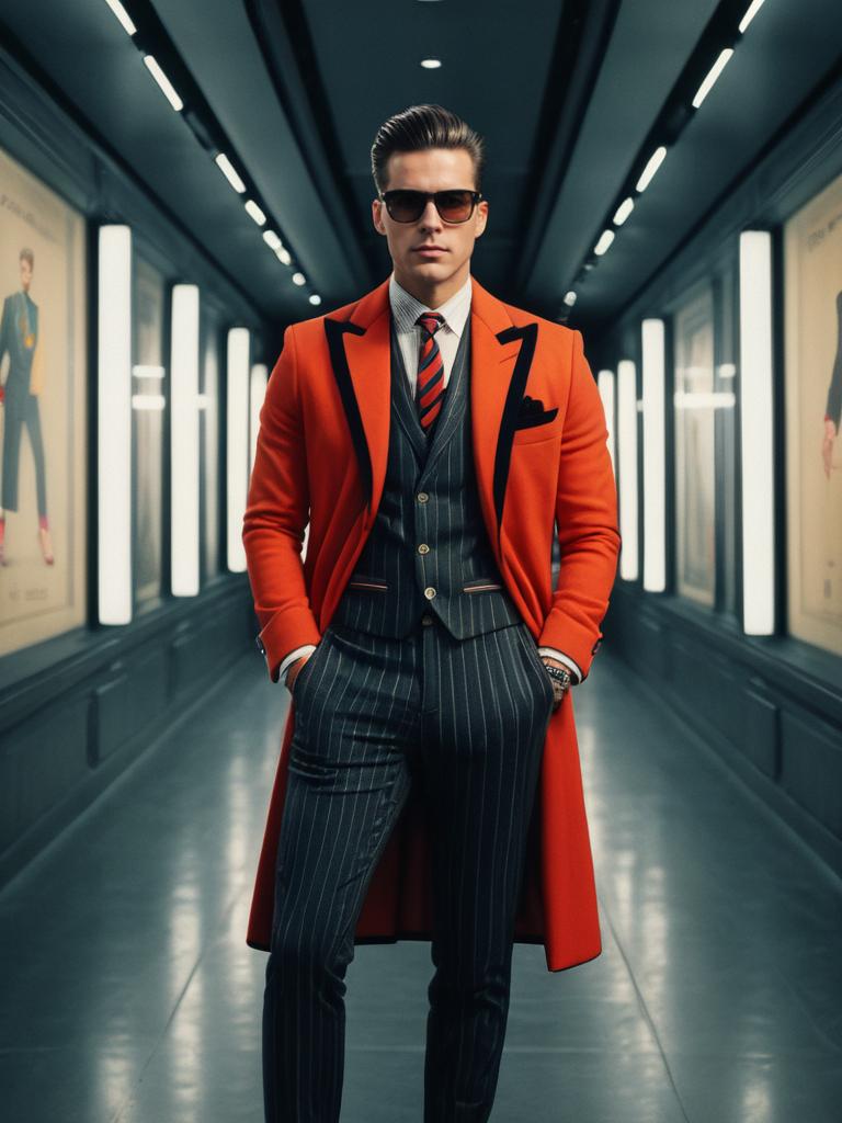Man in Modern Fashion Costume, photorealistic fashion portrait, cinematic realism --sref 1388