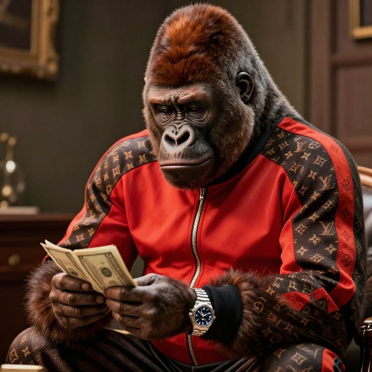 Ultra-Realistic Gorilla Dave Counting Money