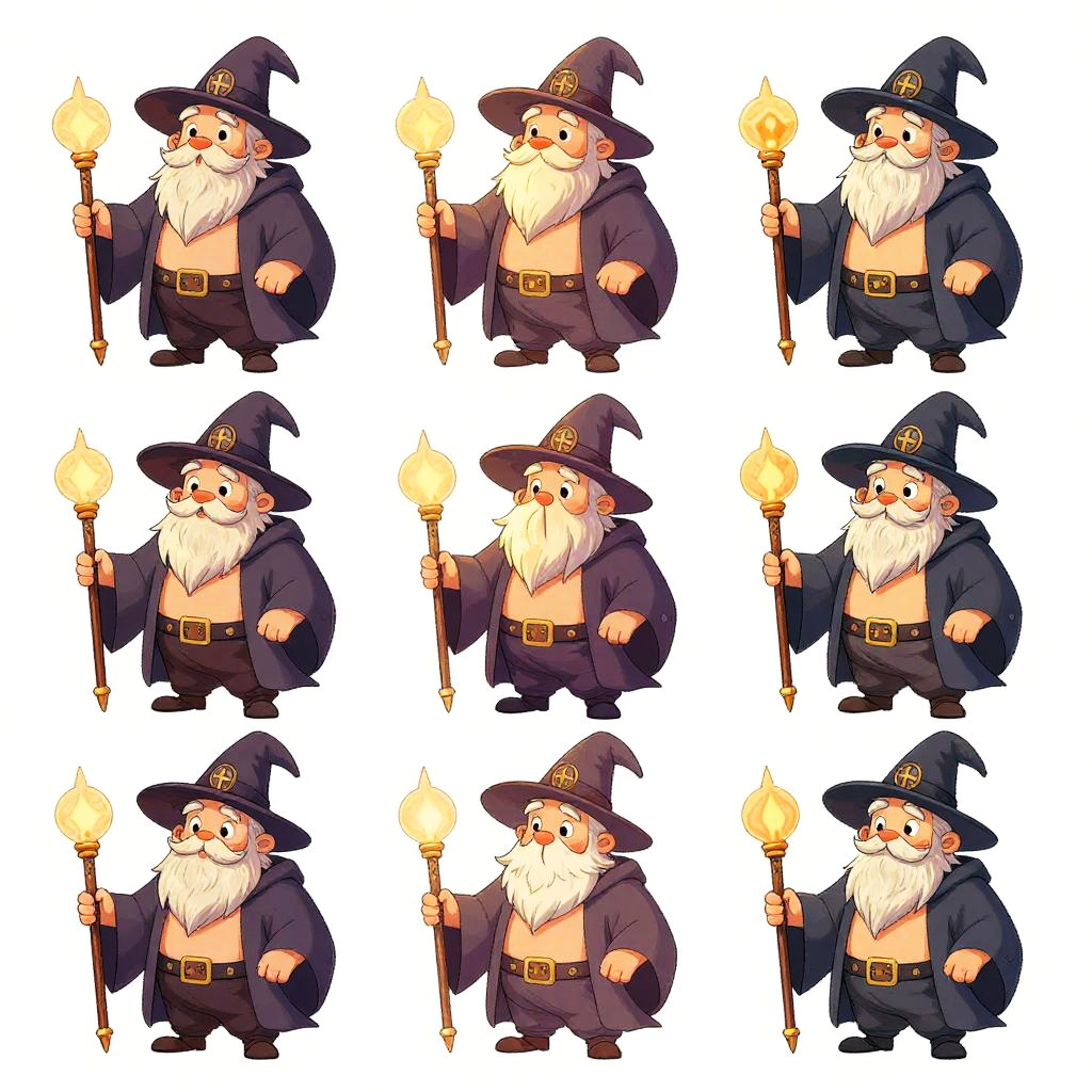 Whimsical Cartoon Wizard Turnaround Sheet