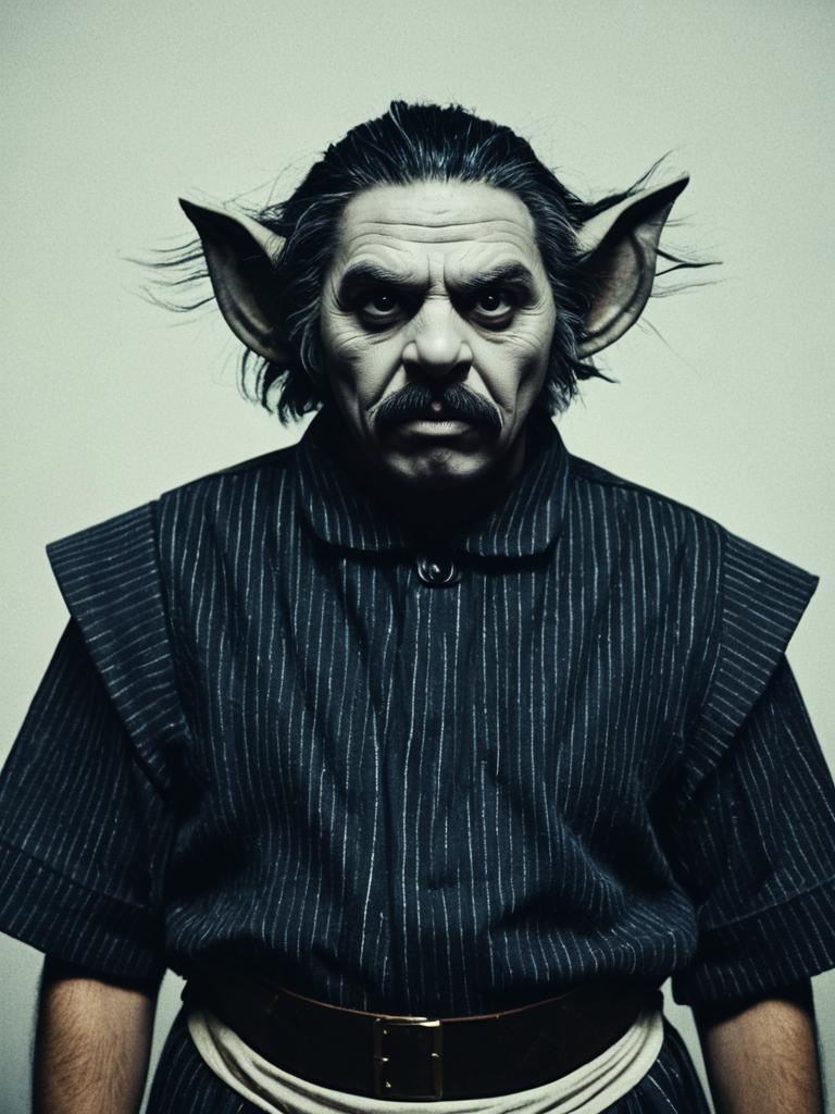 Person in Toto Costume, waist-up editorial portrait, photorealistic tones