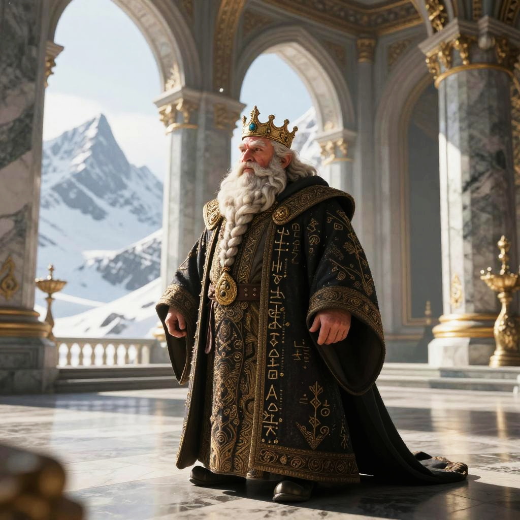 Dwarven King in Ornate Robes in Marble Palace