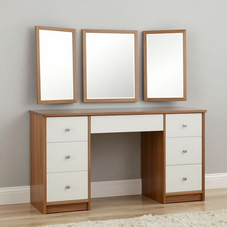 Fineboard Three Mirror Vanity Dressing Table Set with Sto...
