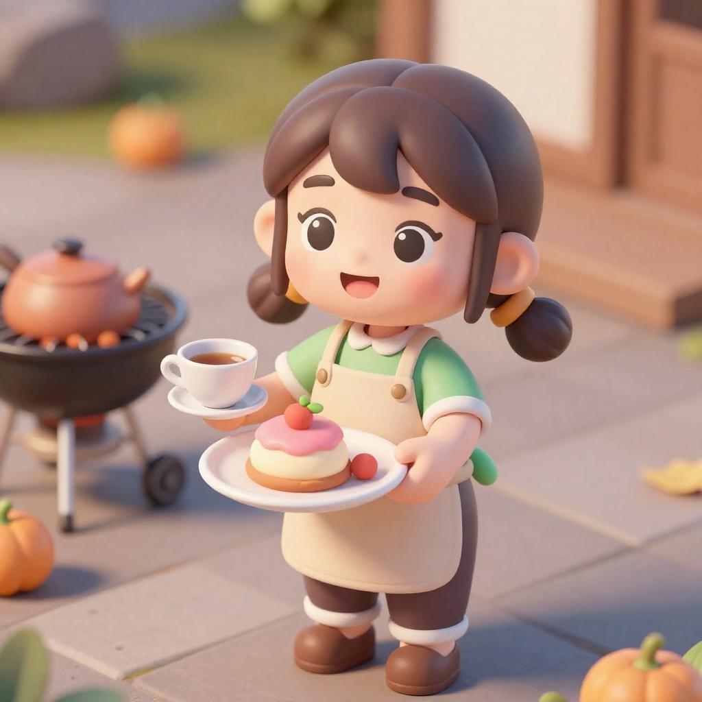 Digital illustration of two colorful, cartoonish characters on a city street. The front character, green with curly hair, drives a small beige car with a round yellow light. The back character, purple with a pink face, walks behind. Neon signs illuminate the background. The green character has a smiling expression. The street is lined with brick buildings and a wooden fence.