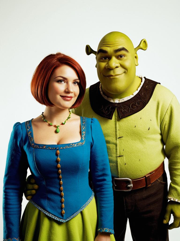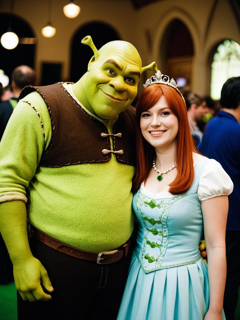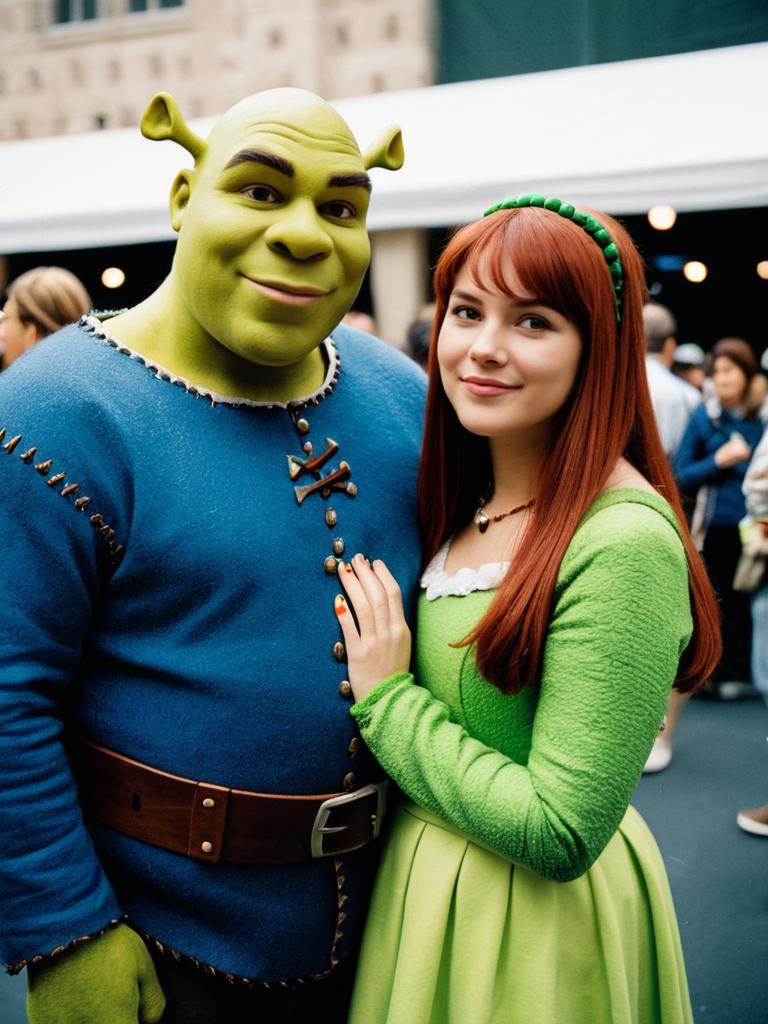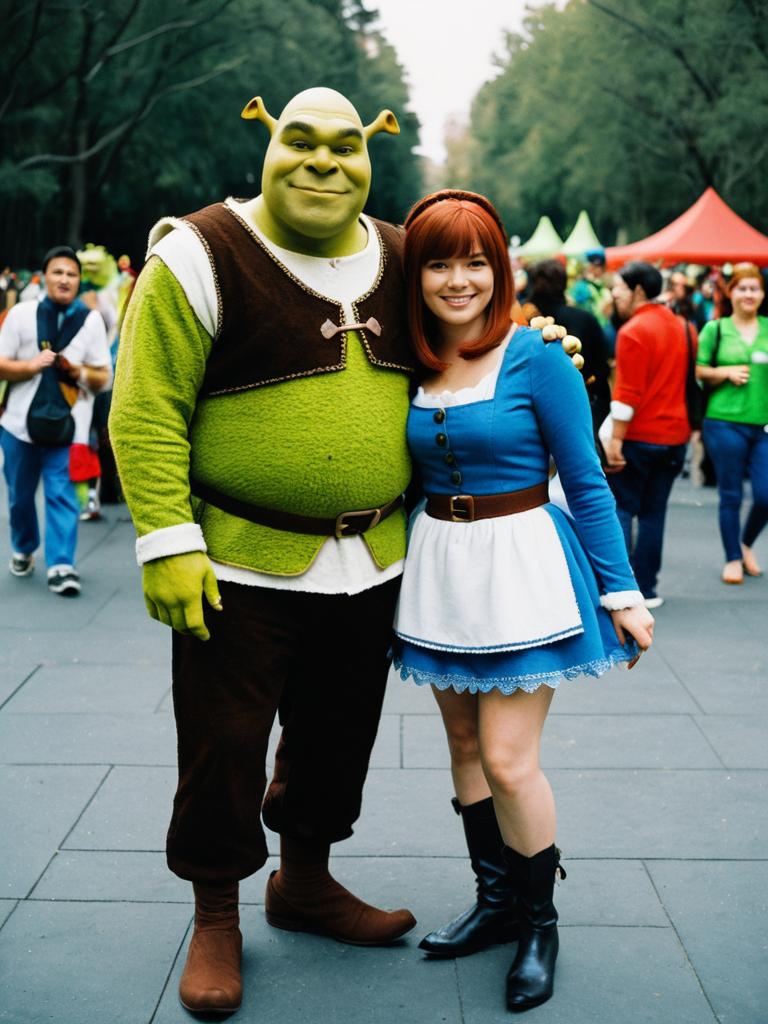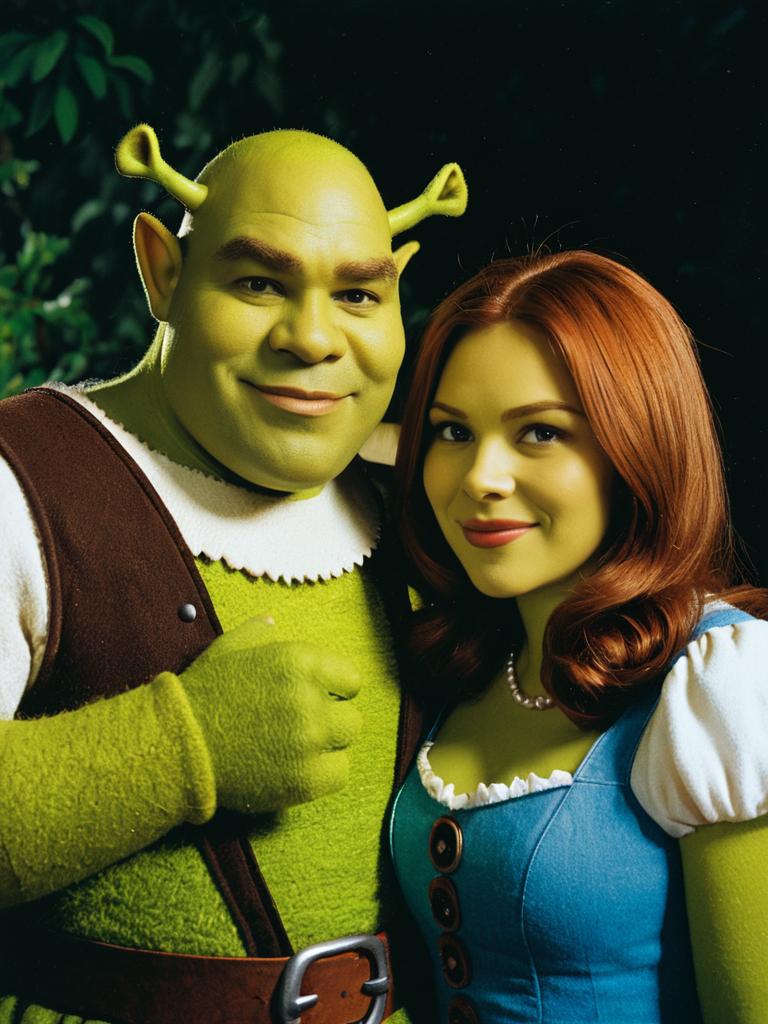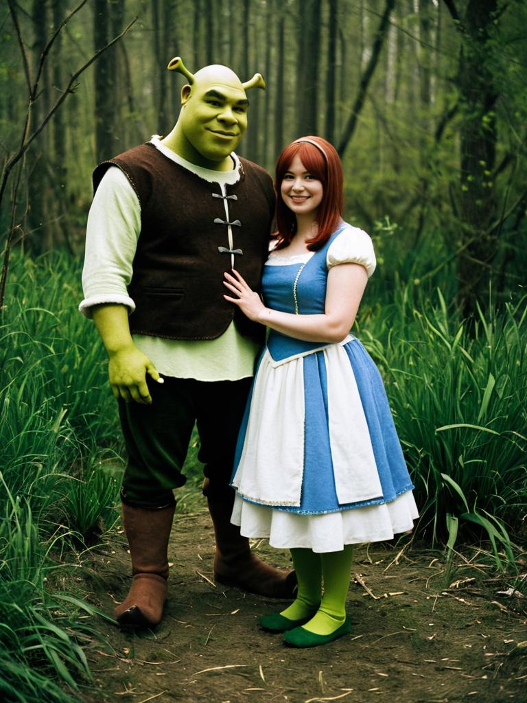 Photorealistic Couple in Shrek Costumes