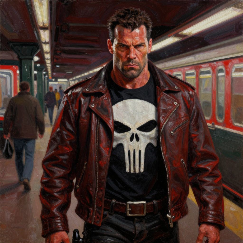 Max Payne beard, stylized comic book cover art of a rugged man with a full beard, scars on face, clenched jaw, dramatic lighting, rain pouring down, dark city skyline behind, intense and brooding hero vibe, detailed pencil sketch with color highlights.