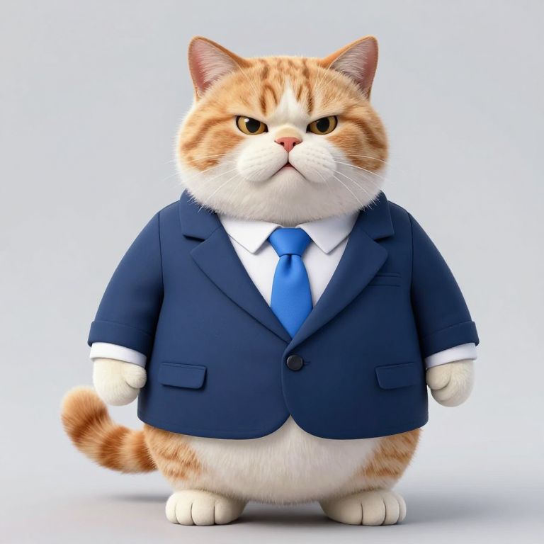 Grumpy Cat Character with Donald Trump Suit and Hairstyle