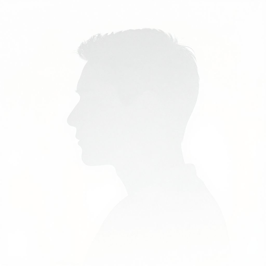Fade white man silhouette merging with a bright white background, minimalist design, subtle textures and gentle gradients emphasizing the fading effect, calm and peaceful mood, emphasizing the concept of impermanence and transition.