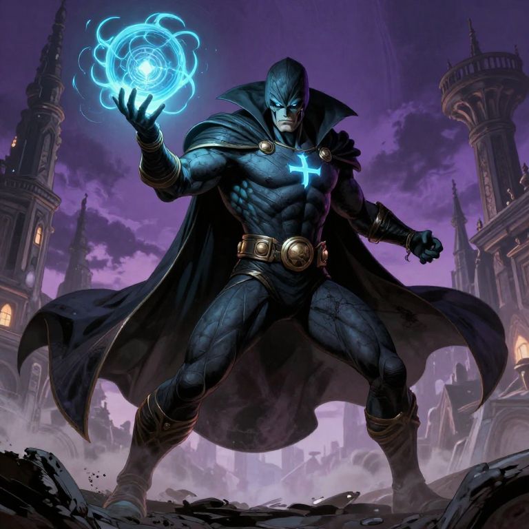 Romantic Necromancer transforms into a Marvel hero with 4D image illustrations , illustred bu Gruau,
