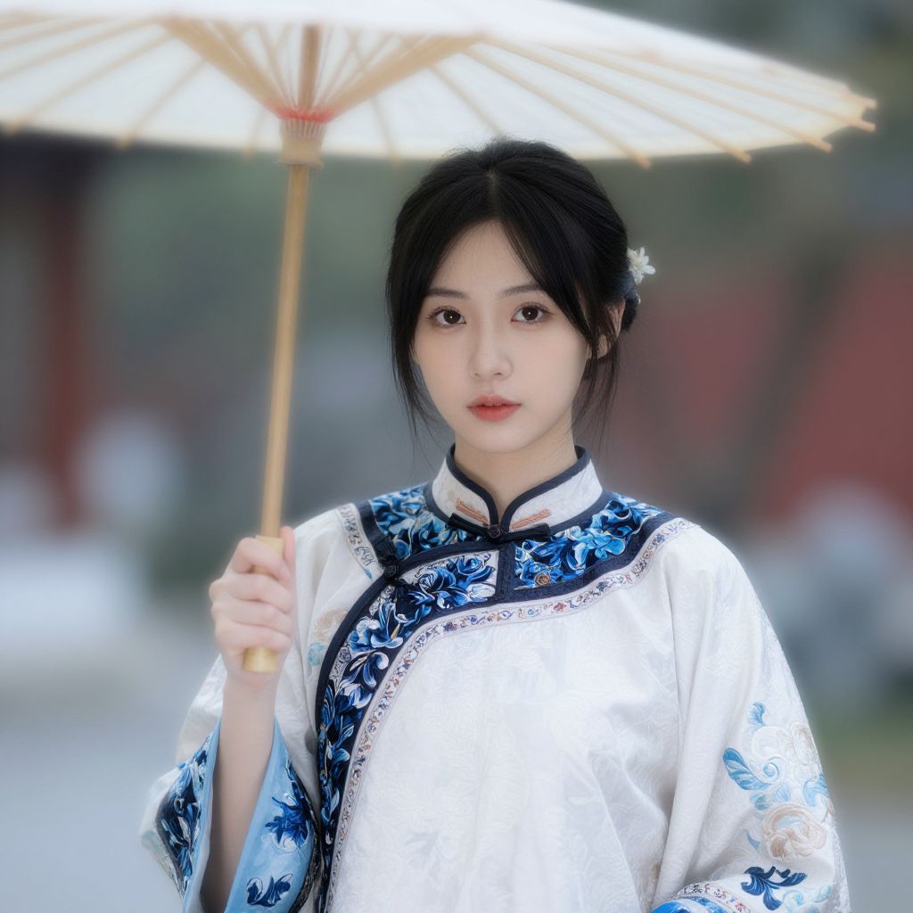 Elegant Mandarin Costume Girl Outdoors