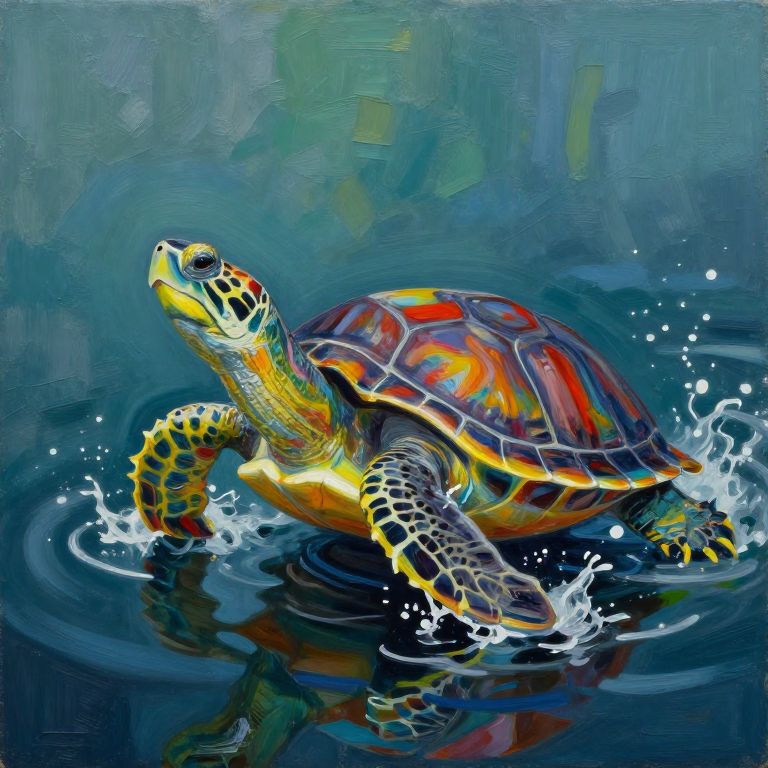 Tortue Contemplative en Peinture Impressionniste