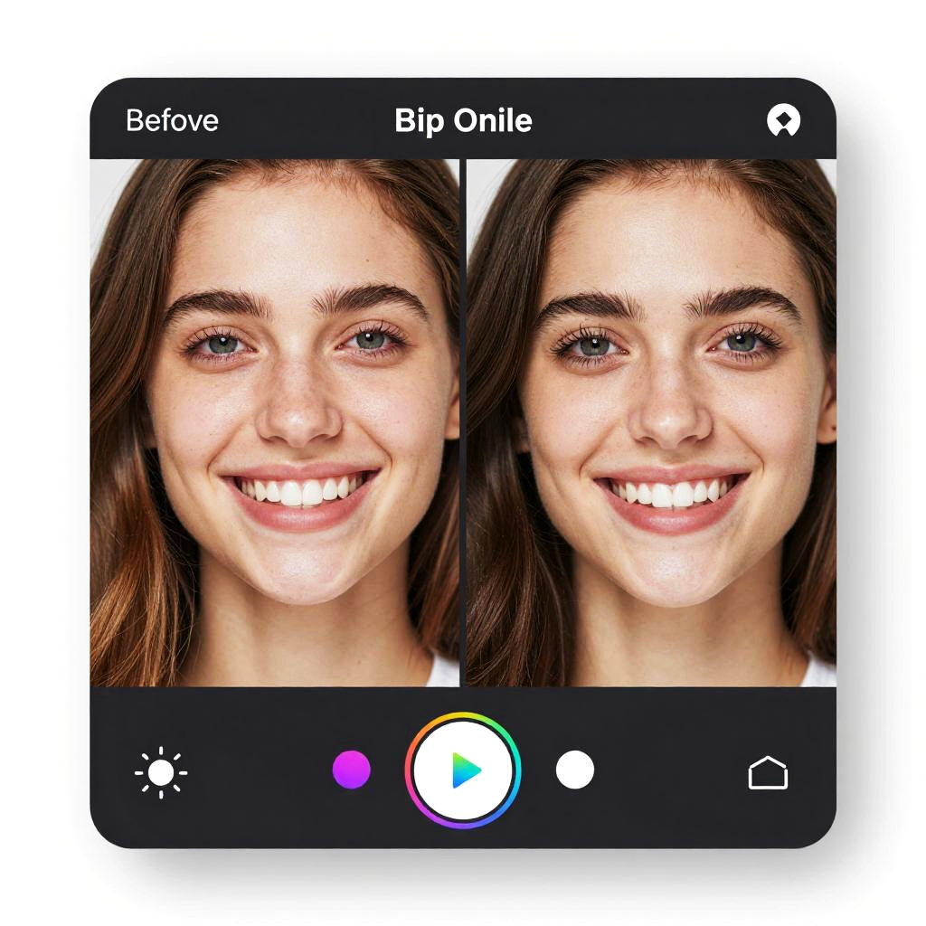 Photo smile editor online free interface showing vibrant before and after images, user-friendly digital workspace with colorful smile transformation tools, bright UI elements, and detailed facial feature enhancements, realistic smile upgrades in a modern web-app setting.