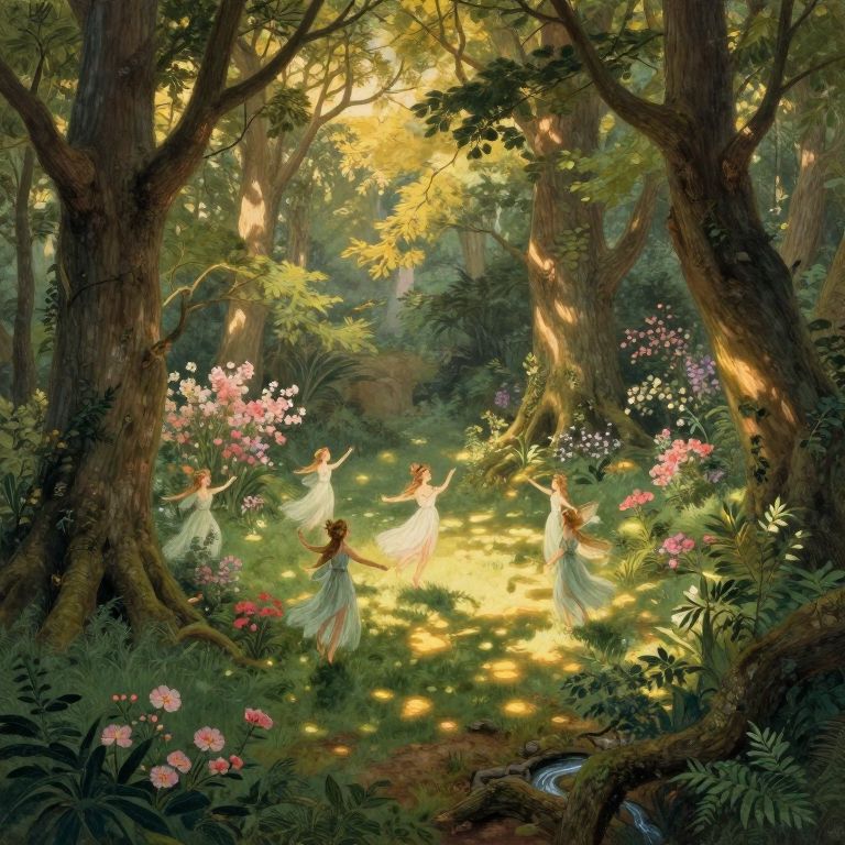 Ethereal Nymphs in Enchanted Forest