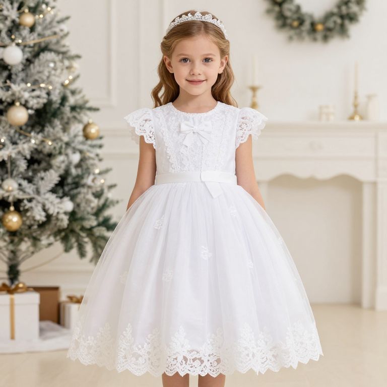 Fancy Vestidos Holy Communion Puffy Bow Lace Christmas Little Girls ...