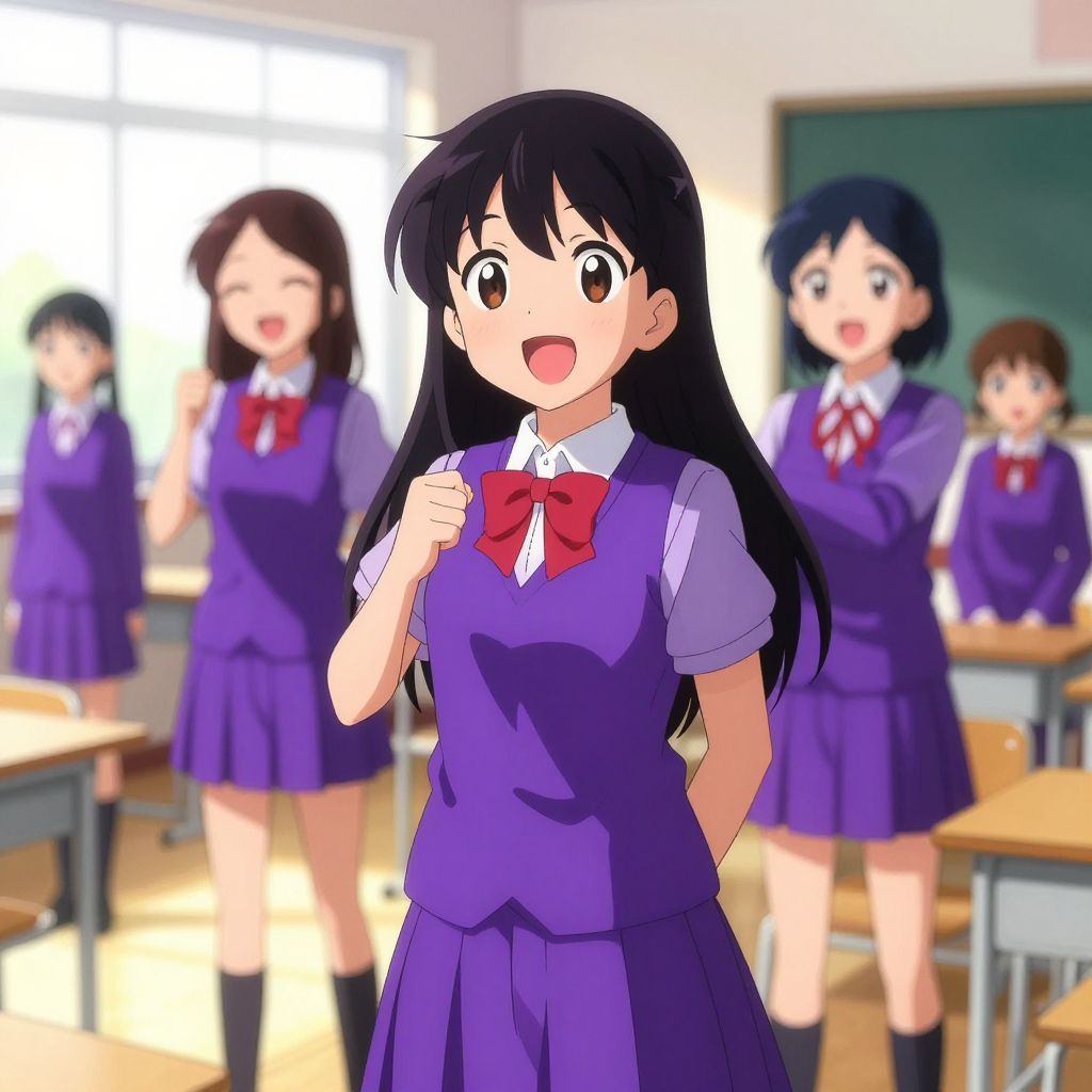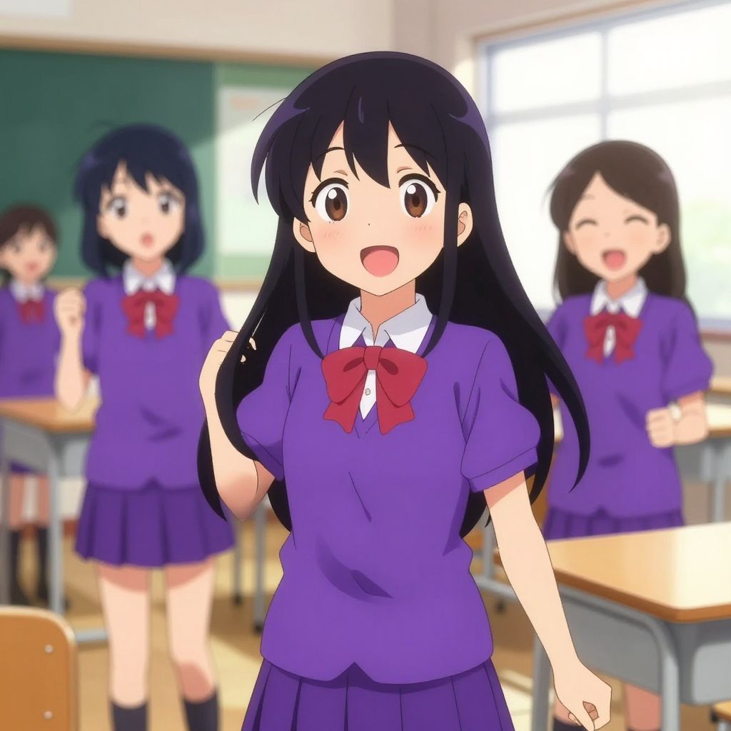 Cheerful Anime Girls in Purple Uniforms