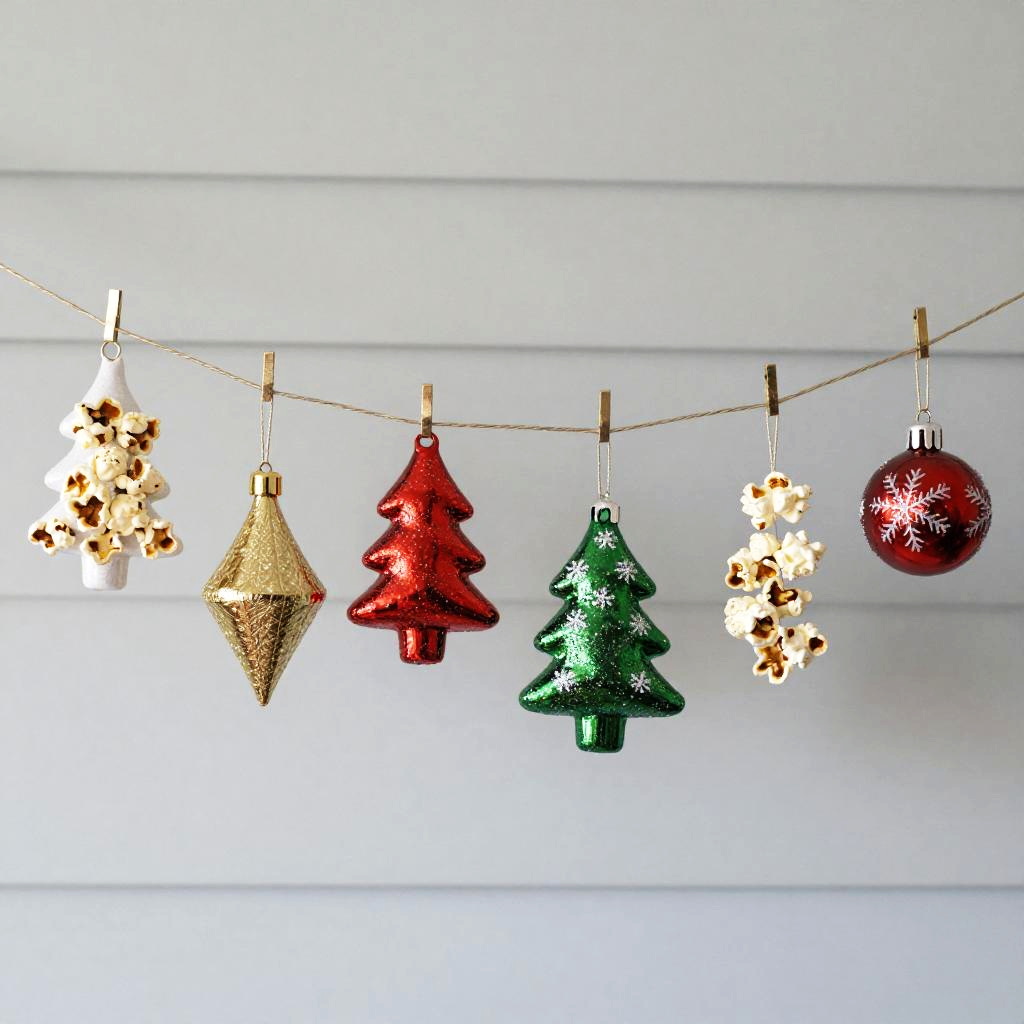Christmas tree decorations, feather boas on a string