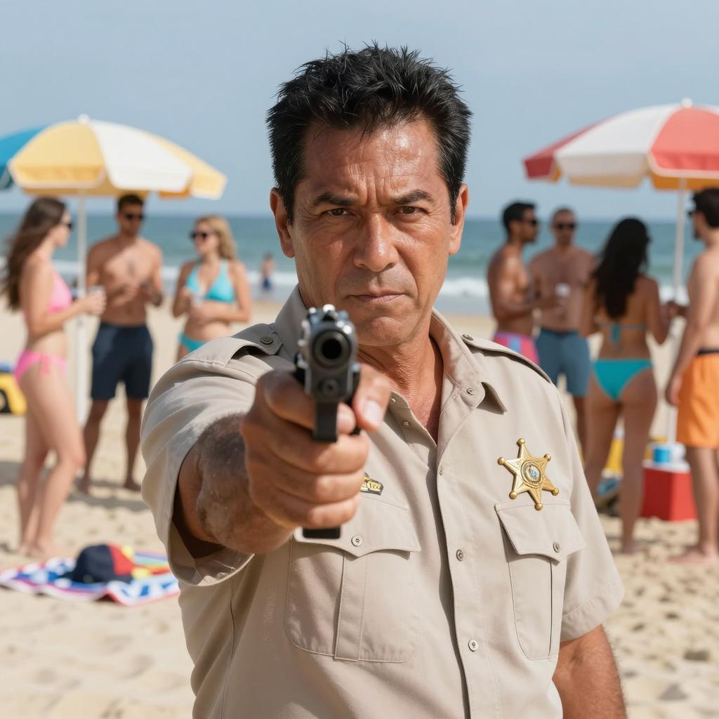 Serious Sheriff on the Beach