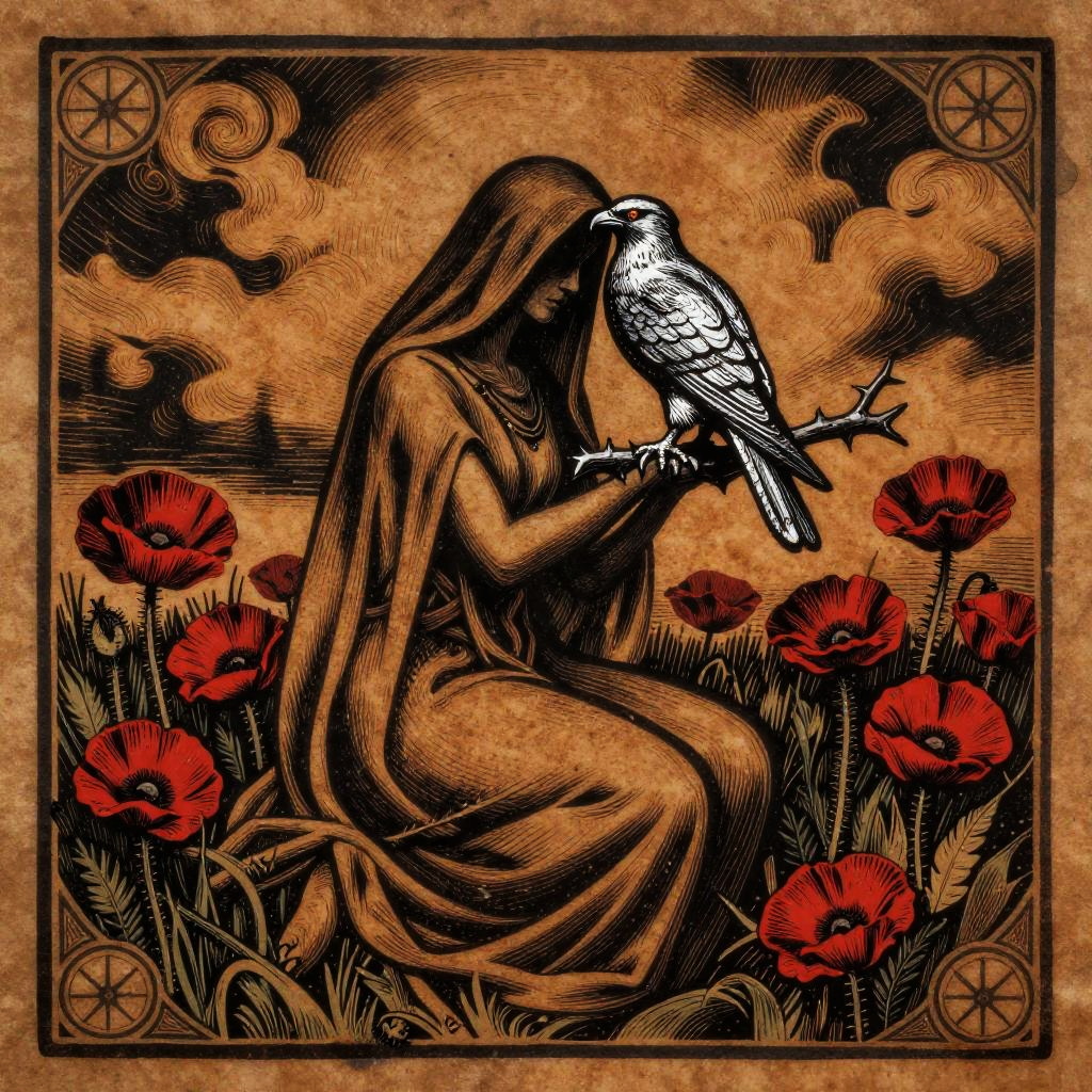 Ethereal Priestess Amid Celestial Blooms