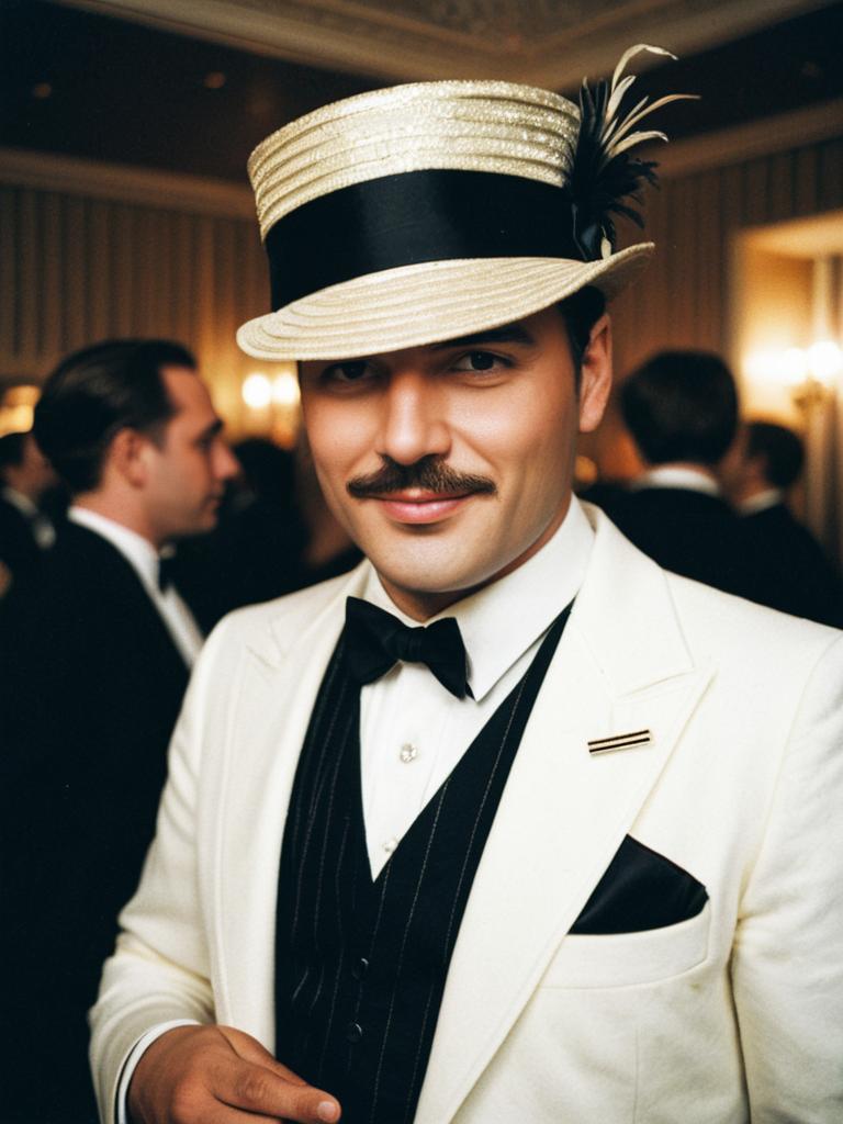 Man in Gatsby Party Costume, candid cosplay portrait at themed party