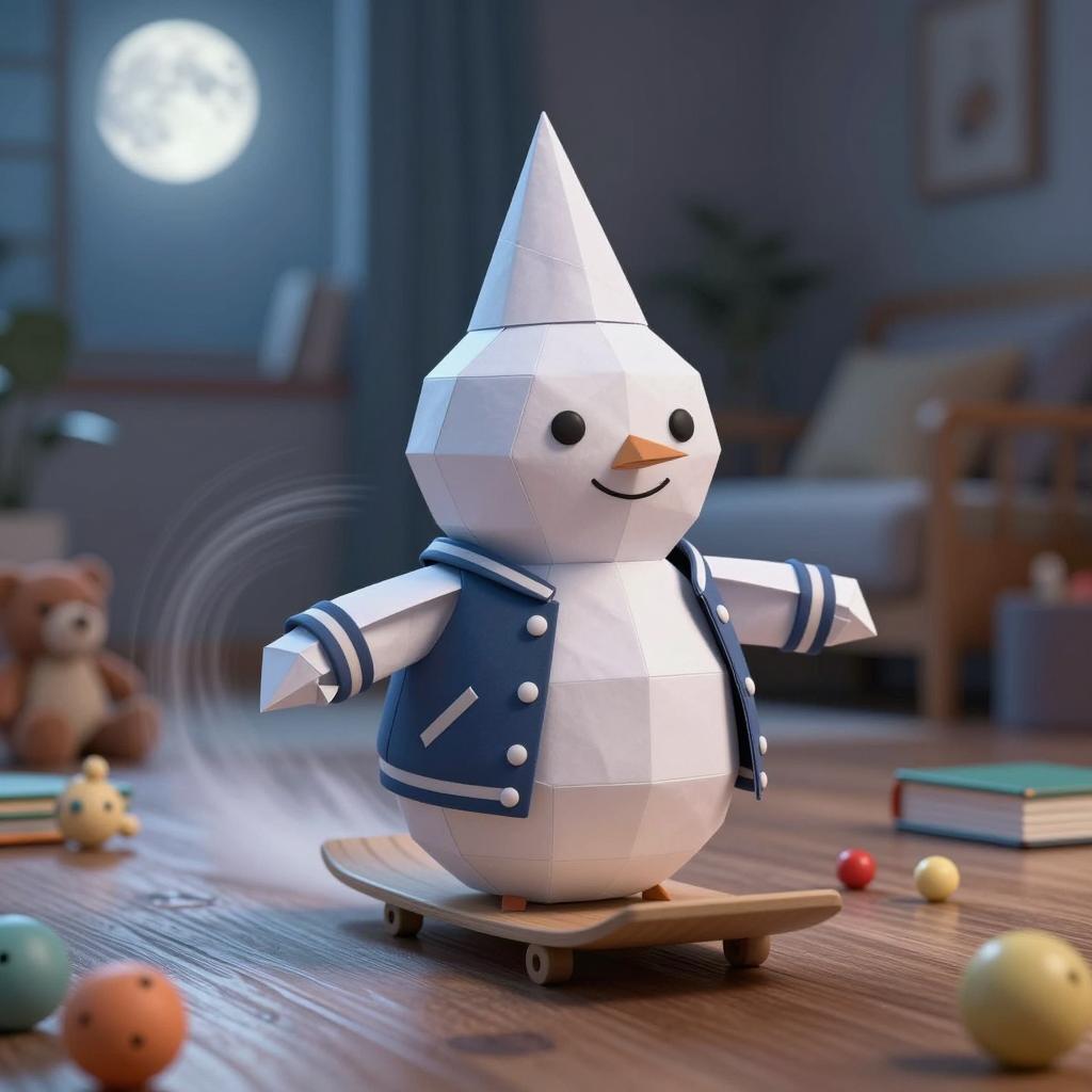 Whimsical Snowball Wizard in Cozy Bedroom